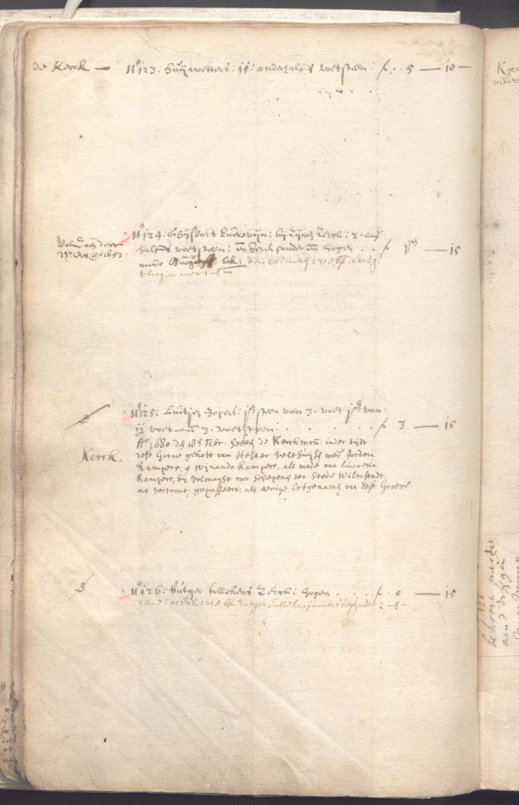 Binnen de rand is de zerk zeer afgesloten. Vaag is nog te zien dat er een wapenschild aan riemen met daarin knopen, opgehangen was.