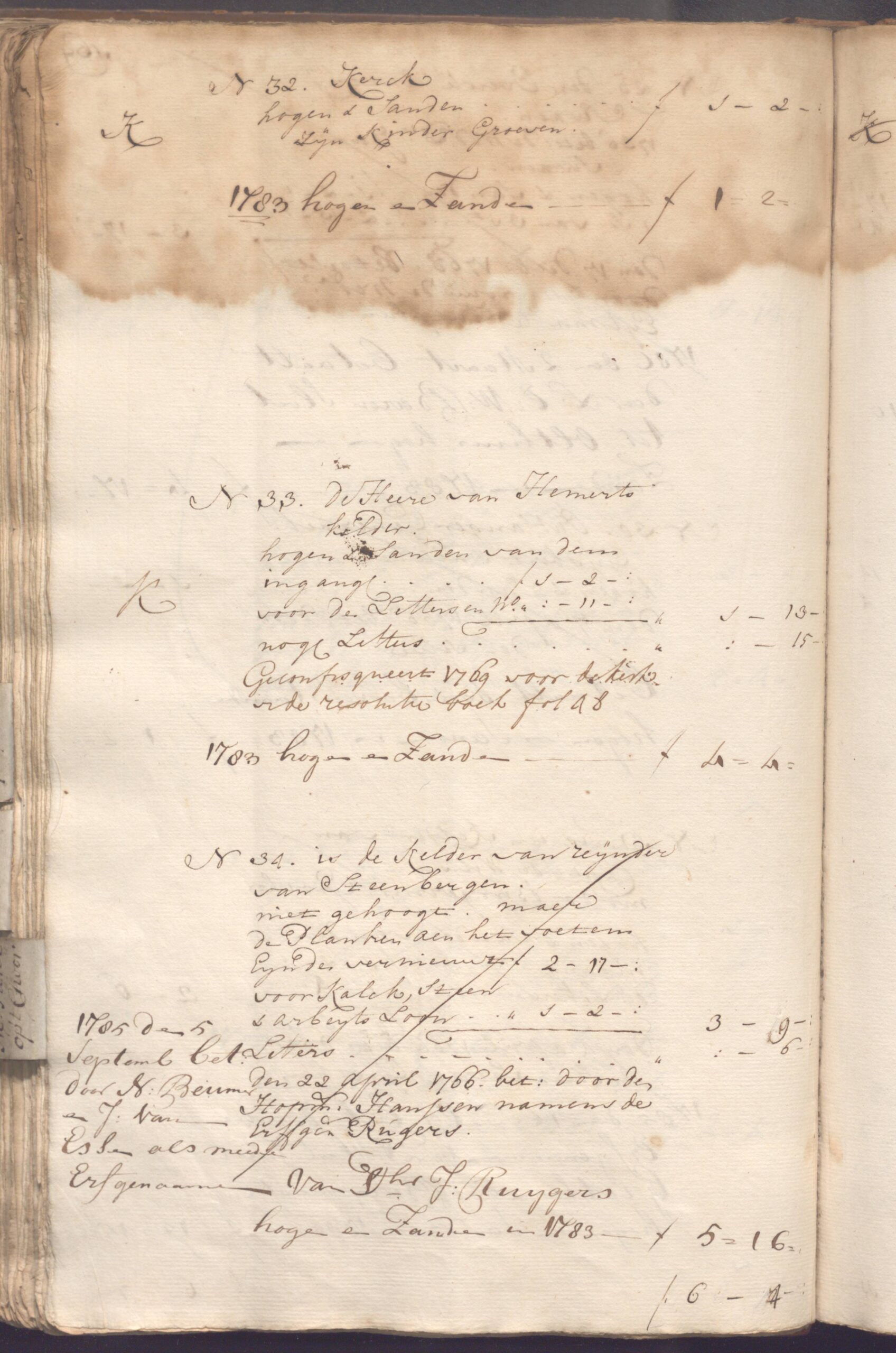 Deze zerk van formaat 108 x 205 cm heeft over de breedte enkele grote breuklijnen en de randen zijn beschadigd. Linksboven staat “KELDER” en boven, in het midden het getal '34'. Vlak daaronder bevindt zich een 2 regeling opschrift in Latijnse letters. Het opschrift luidt: