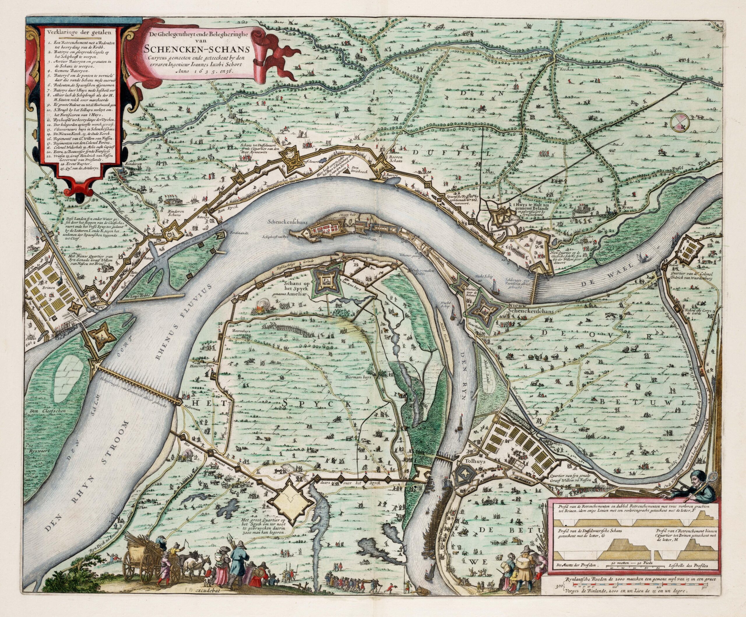 Op het eiland 's Gravenweerd (het eiland werd ook 'Voshol' of 'Vossegat' genoemd), gelegen tussen de Rijn en Waal, werd in de 14de eeuw door graaf Jan van Kleef een burcht gebouwd. Op dezelfde plek werd in 1584/1586 door kapitein Maarten Schenck van Nydeggen de vesting Schenckeschans (Schenkenschans, in het Duits 'Schenkenschanz') gebouwd. Deze locatie bevond zich op een landtong, op de splitsing van de rivieren de Rijn en de Waal. In 1584 lag dit een stuk verder naar het oosten. Door de strategische ligging werd deze vesting de 'poort' of 'sleutel van Holland' genaamd. De eigenaar van deze vesting had de toegang tot Arnhem en de Gelderse steden.