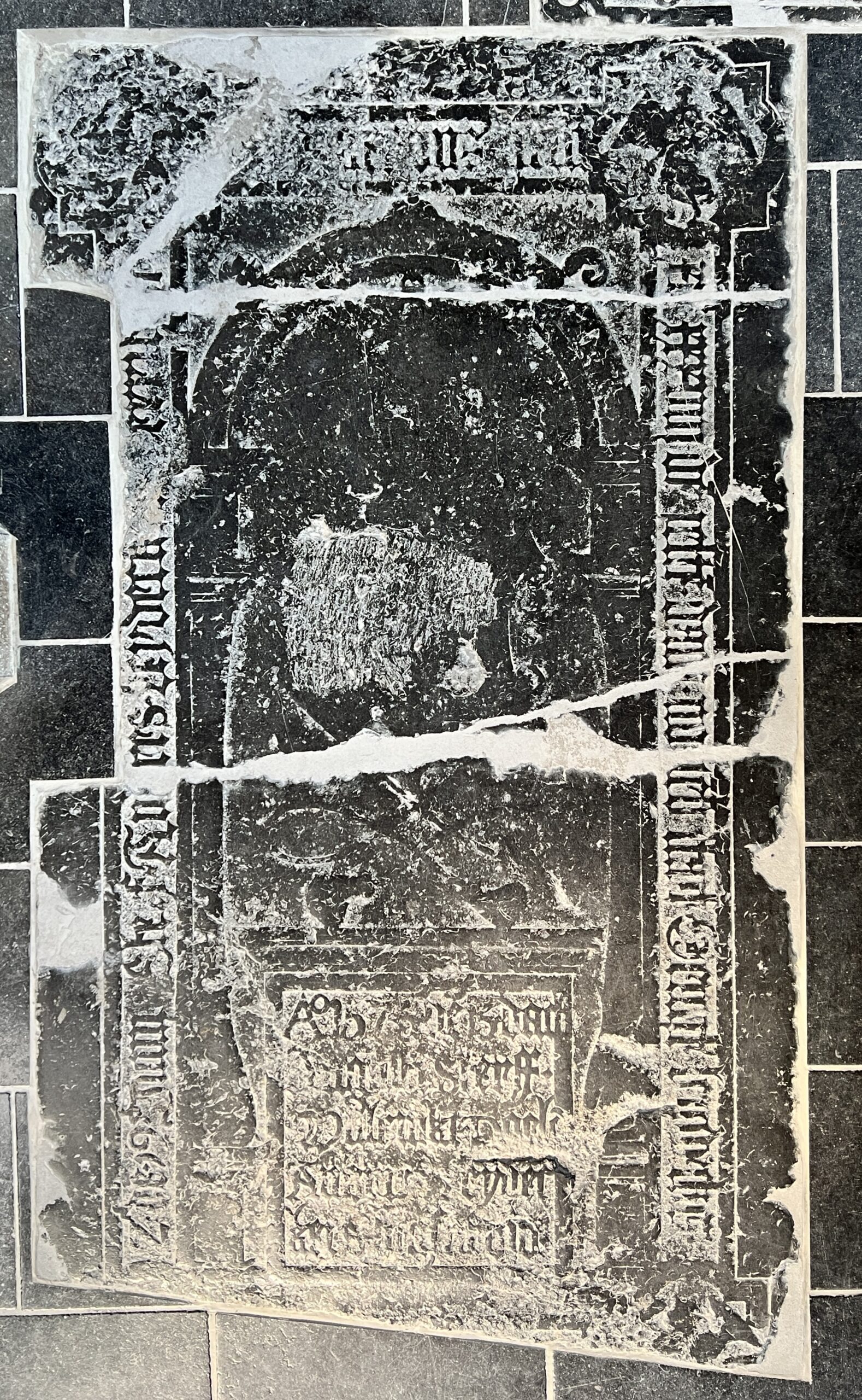De zerk is voorzien van een randschrift met gotische letters. De tekst in het randschrift luidt: