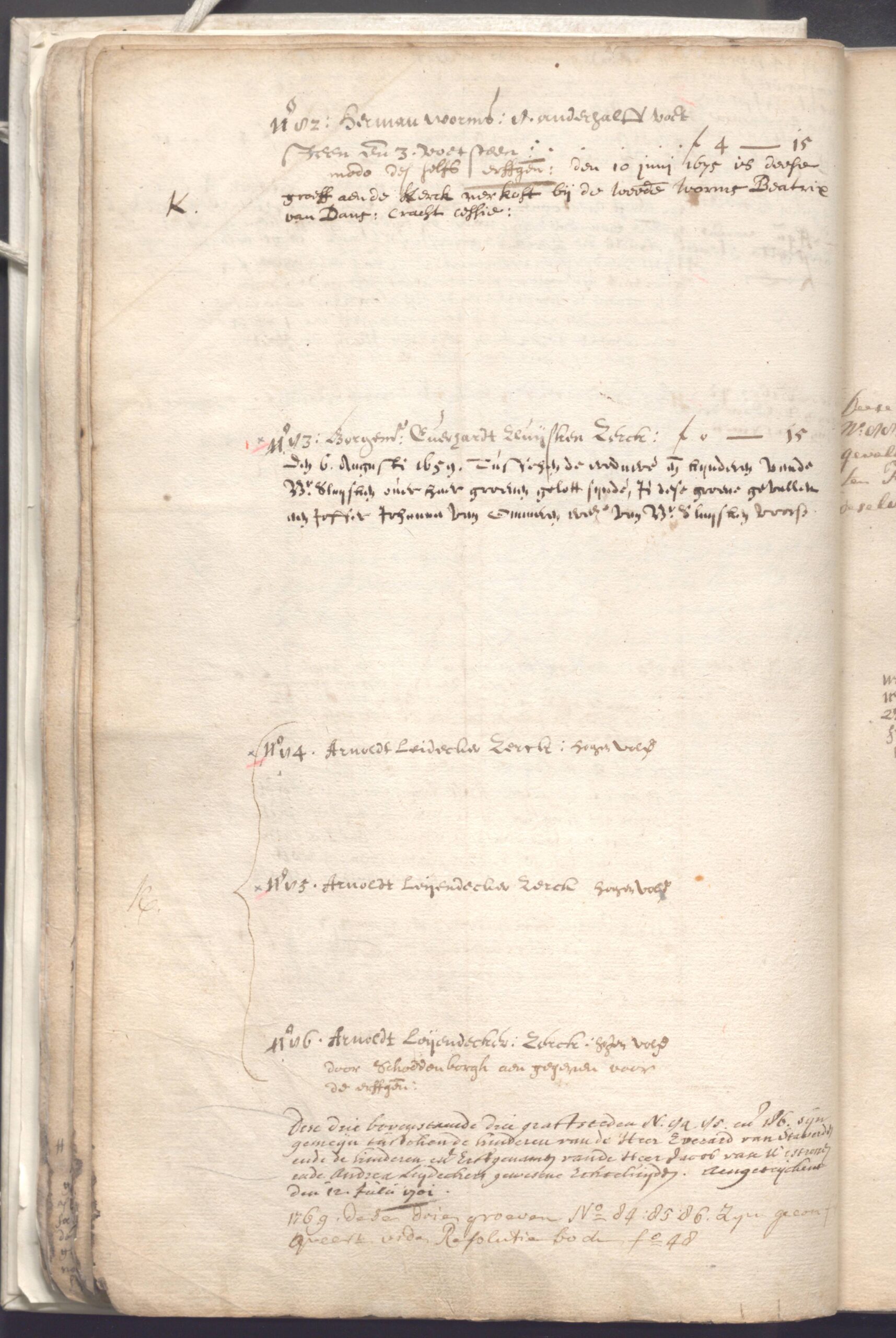 De zerken genummerd 84, 85 en 86 werden in de eerste kerkboeken van de Hervormde Gemeente Arnhem geregistreerd op naam van Arnold Leidecker.