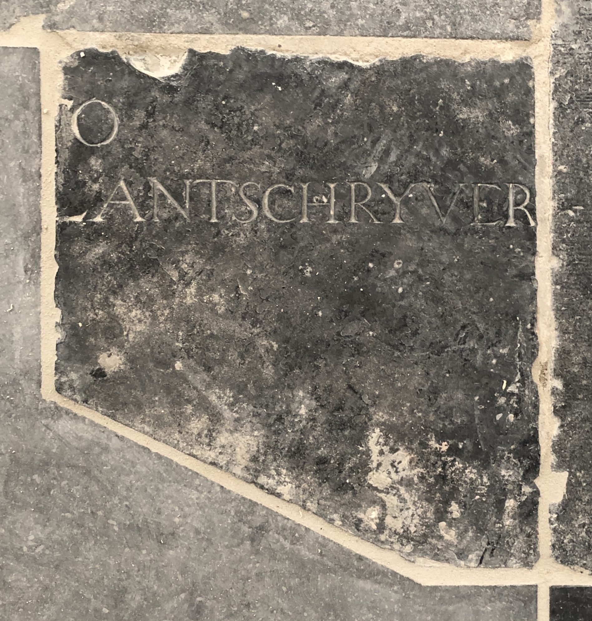 Vlak daaronder, komende uit de rand staat in Latijnse letters: