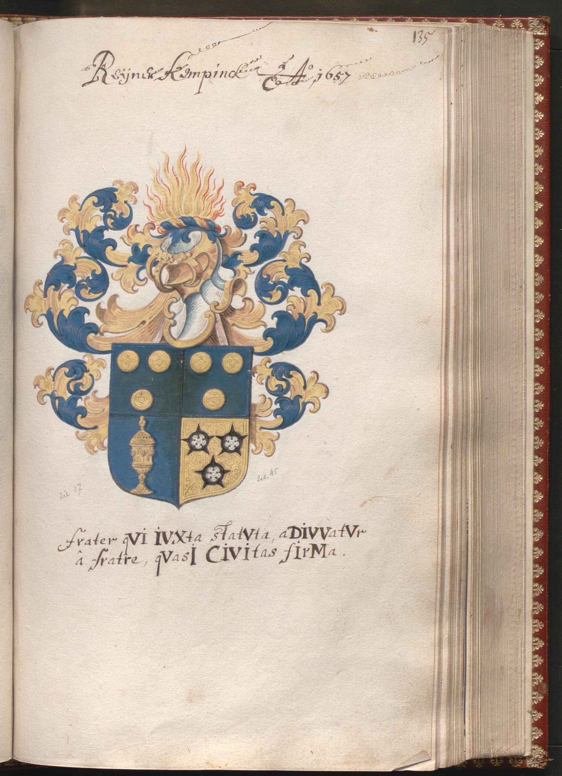 Onder het wapen van Kempinck staat de spreuk: "frater qui iuxta statuta adivvatur a fratre quasi civitas firma". Waarbij er verschillende letters in de woorden met een hoofdletter geschreven zijn. Dit is een chronogram, dat wil zeggen dat de hoofdletters gelezen moeten worden als Romeinse cijfers, die moeten bij elkaar opgeteld worden om bij een getal uit te komen. Hier komt het jaartal 1657 te voorschijn, net als bovenaan de pagina vermeld staat.